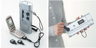 ●手回し発電機付のラジオで、ライト付、しかも携帯電話各社の充電コードまで添付された製品が簡単に手に入ります。最低一つ非常袋の中へ入れておけば電池交換の手間は省けます。